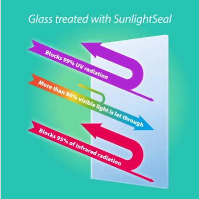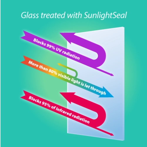 SunLightSeal blocks 99% of all UV radiation and reduces heat loss by shielding up to 95% of infrared radiation.