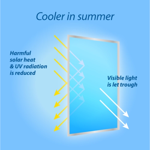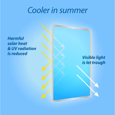 Sun rays are converted into radiant heat when they hit a surface such as glass.