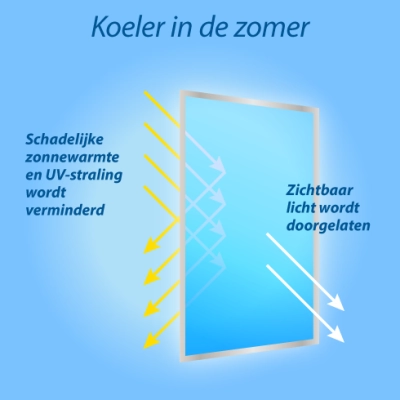 Zonnestralen worden omgezet in stralingswarmte wanneer ze op een oppervlak zoals glas vallen.