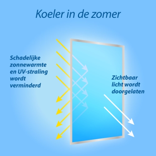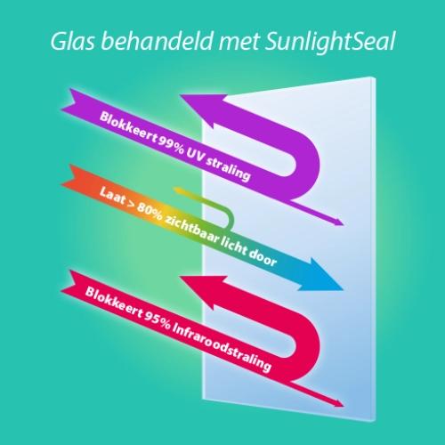SunLightSeal blokkeert 99% van alle UV-straling en vermindert het warmteverlies door tot 95% van infrarode straling af te schermen.